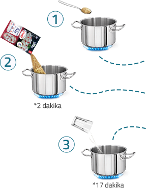 • Kavurduktan sonra 4 su bardağı (750 ml) sıcak su ekleyerek, 7 dakika orta ateşte, daha sonra 10 dakika kısık ateşte pişiriniz.