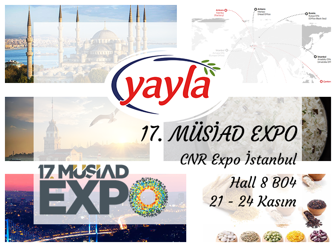 Yayla Bakliyat , 21-24 Kasım 2018 tarihleri arasında İstanbul’da CNR Expo’da düzenlenen Müsiad Expo fuarına katılıyor. Yayla Bakliyat yeni, inovatif ve sağlıklı ürün gamını dünya ile birkez daha buluşturmaktan memnuniyet duymaktadır