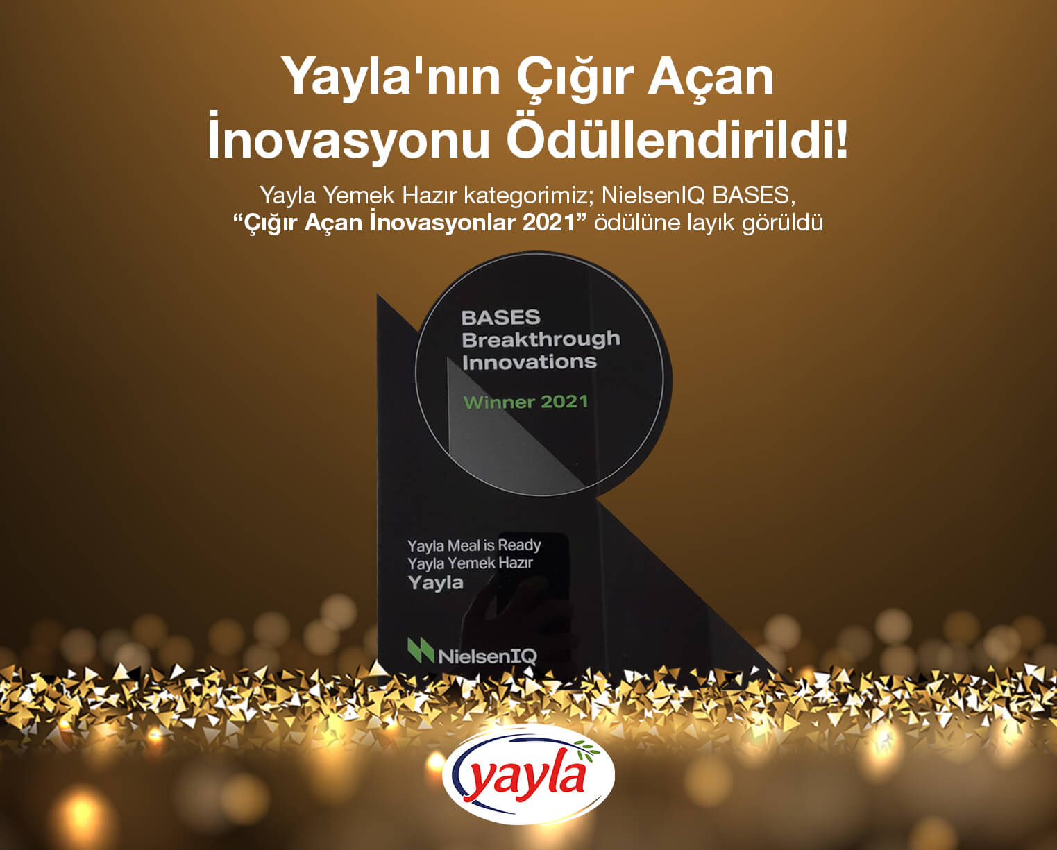 Markaların inovasyonlarını ve bu inovasyonların hangi pazar dinamiklerine ve tüketim tercihlerine yanıt vererek başarıya ulaştığını görünür kılmayı amaçlayan NielsenIQ BASES “Top Breakthrough Innovation – Çığır Açan İnovasyonlar 2021” listesi açıklandı. Bu yıl 10.kez yayımlanan listede Yayla Agro, katkısız, koruyucusuz, ev yemeği tadında Yemek Hazır ürünleri ile NielsenIQ BASES Çığır Açan İnovasyonlar 2021’de gıda kategorisinde ödül almaya hak kazandı.