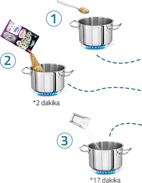 • Kavurduktan sonra 4 su bardağı (750 ml) sıcak su ekleyerek, 7 dakika orta ateşte, daha sonra 10 dakika kısık ateşte pişiriniz.
